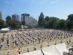 駒沢オリンピック公園競技場で「第78回大田区立中学校陸上競技選手権大会」が行われました。自ら希望して参加した選手たちは、猛暑の中の練習を経て大会に臨みました。全力で応援やプレーをし、それぞれの練習の成果を残して満足そうな様子が見られました。