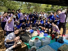 洗足池公園で開催されたガーデンパーティーに生徒会の呼びかけで集まったボランティア生徒がゴムフーセンに片栗粉と水を入れたおもちゃを作る催しを「にぎにぎパラダイス」と名付けて行いました。大勢の子供たちが楽しく参加しました。