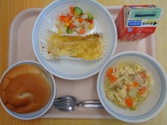 ミルクパン 牛乳 ホキのモルネソース焼き マセドアンサラダ ヌードルスープ