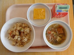 豚肉とごぼうの混ぜごはん 牛乳 卵焼き のっぺい汁