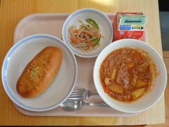 ガーリックトースト 牛乳 ポークシチュー ツナサラダ