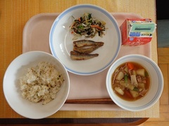 菜めし 牛乳 小いわしの漬け揚げ 磯和え 豚肉と大根のうま煮