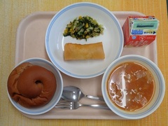 ココアパン 牛乳 パリパリチキンロール 野菜ソテー ミネストローネ