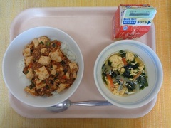 麻婆豆腐丼 牛乳 サンラータン