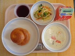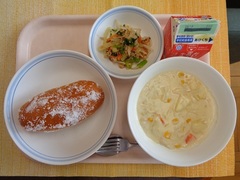 揚げパン 牛乳 コーンシチュー ツナサラダ