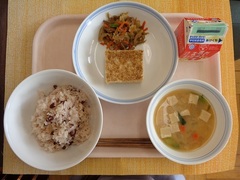 あずきごはん 牛乳 松風焼き 五目きんぴら けの汁