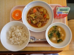 給食では、辛いのが苦手な人でも食べられる味付けにして作りました。