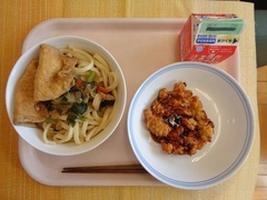 きつねうどん 牛乳 いかっぺったん