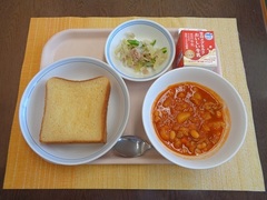 はちみつレモントースト 牛乳 ポークビーンズ アスパラガスのサラダ