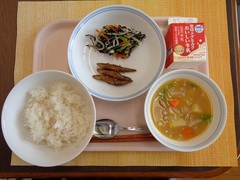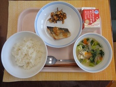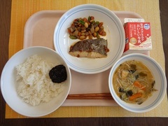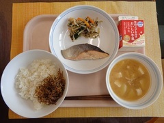 ごはん のりの佃煮 牛乳 鰆のしょうが焼き 五目豆 わかめのみそ汁