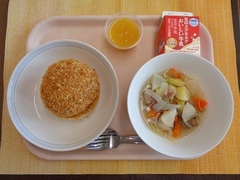 焼きカレーパン 牛乳 ポトフ オレンジゼリー