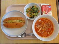 ツナポテトドッグ 牛乳 コーンとわかめのサラダ トマトスープ