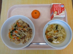 ビビンバ 牛乳 わかめ卵スープ 冷凍みかん