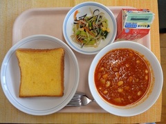 フレンチトースト 牛乳 チリコンカン ひじきのサラダ