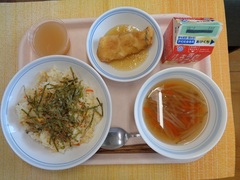 今日の給食は、油で揚げたスケトウダラに野菜あんかけをかけて食べる献立でした。