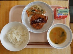 ごはん 牛乳 キャベツ入りメンチカツ 春雨と野菜の炒め物 みそ汁