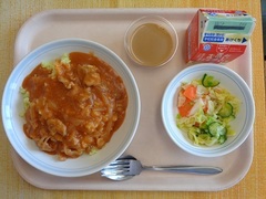 今日の給食のハッシュドポークは、疲労回復に効果的な、豚肉、玉ねぎ、にんにくが使われています。