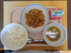 ごはん 牛乳 豚肉のオイスターソース炒め 中華スープ