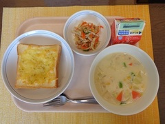 ガーリックチーズトースト 牛乳 コーンシチュー ツナサラダ