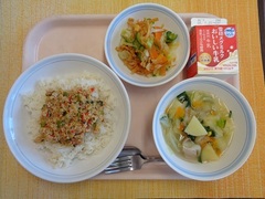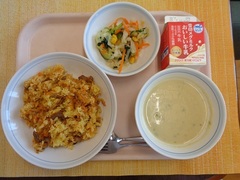 ツナピラフ 牛乳 レモンサラダ 白いんげん豆のポタージュ