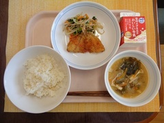 ごはん 牛乳 あじフライ 野菜のごましょうゆ和え わかめとたまねぎのみそ汁