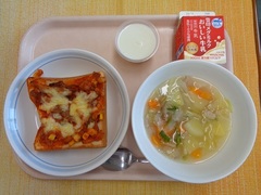 ピザトースト 牛乳 ポトフ みかん入りミルクゼリー