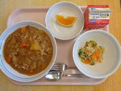 カレーライス 牛乳 野菜サラダ バレンシアオレンジ