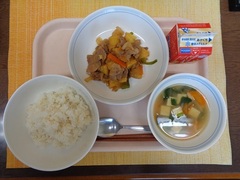 ごはん 牛乳 豚じゃがのオイスターソース炒め 中華スープ