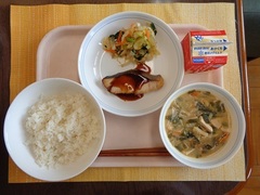 ルーロー飯 牛乳 青菜と卵のスープ 豆乳花風ゼリー
