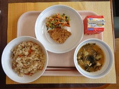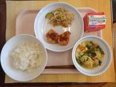 ごはん 牛乳 油淋鶏 ごまじゃこサラダ わかめ卵スープ
