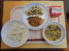 ごはん 牛乳 魚の照り焼き 野菜の菊花和え 呉汁