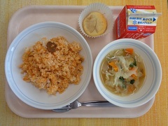 チキンライス 牛乳 コンソメスープ ポムポムケーキ