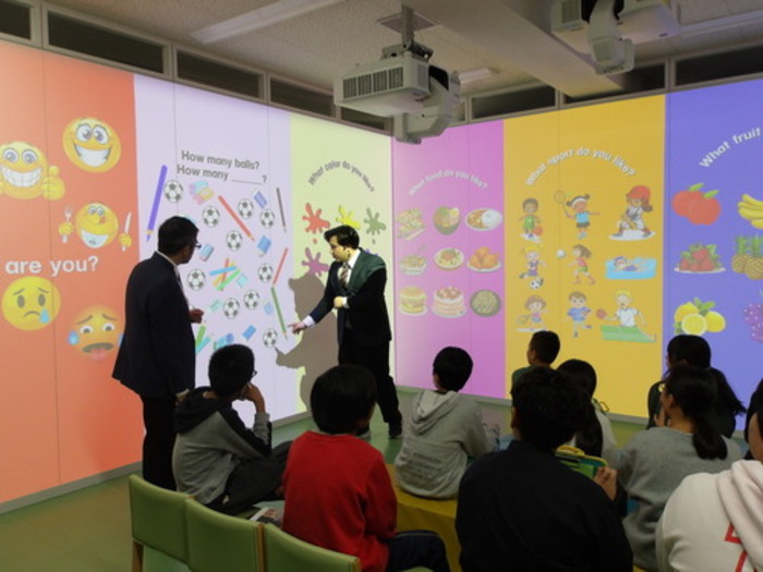 講師の東先生に自己紹介中です。もちろん、この後はじゃんけん真剣勝負!
