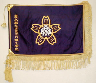 (1) 桜の花びらを大きく六の字と考え、その中心に郷の字を入れて六郷を意味する。
