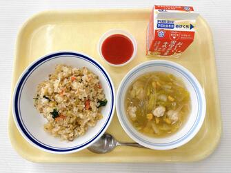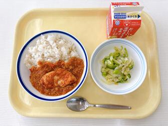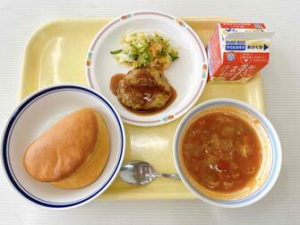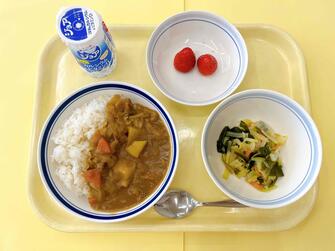 今日はボリュームはありますが、こどもたちがよく食べるメニューです。1年生は、ミルクプリンの上のいちごソースを見て「これはなに?」「いちご?」と恐る恐る食べていました。