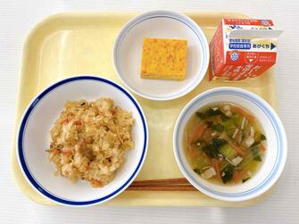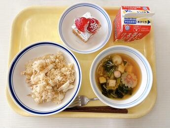 深川めしは東京都江東区の郷土料理です。6年1組の担任の先生の郷土料理として提供しました。あさりや三つ葉など少し苦みのある食材を使っていますが、ほとんどのクラスで完食してくれていました。