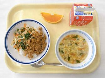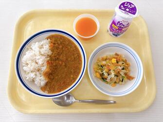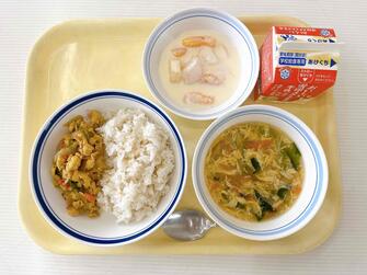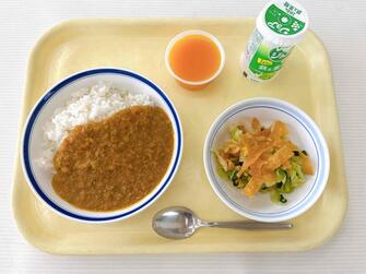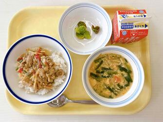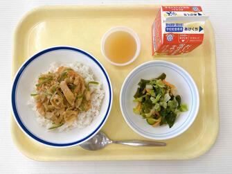 ガパオライスの「ガパオ」はタイ語でバジルのことです。ひき肉と炒めてオイスターソースやナンプラーを使いますが、カレー粉で香りを足しています。「苦手かと思ったけど、食べたら意外といけた!」と1年生もおかわりしてくれました。