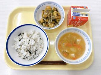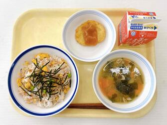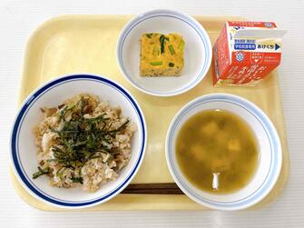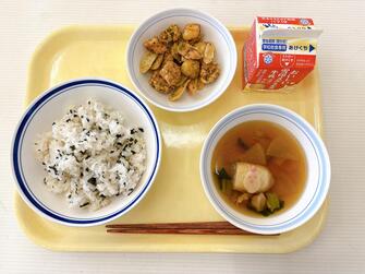 1年生は、ごまわかめごはんが特に人気で、ちくわも「食べたことあるー!」と抵抗なく食べている子が多かったです。和食の中でも食べやすいメニューだったので、よく食べていました。