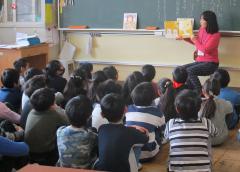 子どもたちが毎回楽しみにしている、PTAのボランティアの方々による本の読み聞かせです。月に一回程度開いていただいています。