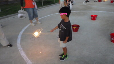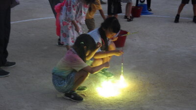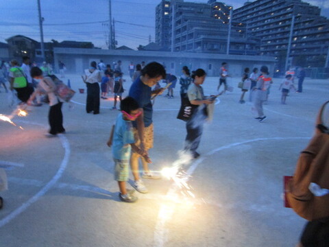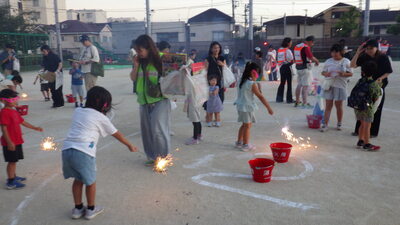 その後、校庭に移動して親児の会の皆様に安全管理をしていただき、こどもたちは花火を楽しむことができました。