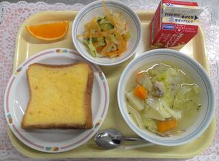 ヨーグルトフレンチトースト ポトフ パリパリサラダ 清見オレンジ 牛乳