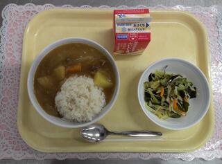 カレーライス 海藻サラダ 牛乳