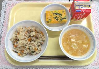 きんぴらごはん ちぐさたまごやき みそ汁 牛乳