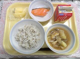 ごまごはん 焼き魚 豚汁 りんご 牛乳