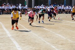 今年度、1年生は六郷の渡し、2年生は台風の目、3年生はムカデ競争を行いました。その他に全員リレーや大縄跳びがあり、競技を通してクラスの団結力を高めています。また、学年の枠を超えて3年生を中心に考えた学級ごとの応援合戦や、競技でも学級ごとに競い合うことで、全校生徒に協調性と一体感が生まれます。