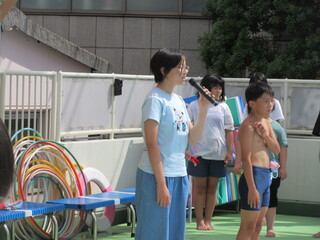 待ちに待った水泳が始まります。その前に、毎年、プールの底で過ごしていたヤゴを助ける活動を行っています。