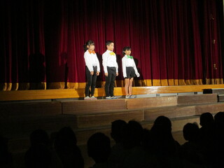 3学期初めの音楽朝会は1年生が発表をしました。