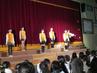 2月2日(金曜)に今年度最後の音楽朝会として4年生が合唱「Can do~君が輝くとき~」と合奏「茶色の小びん」を披露しました。