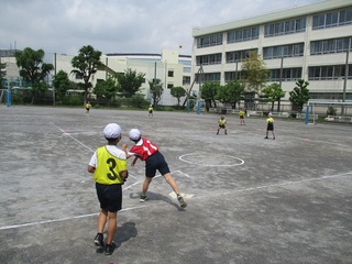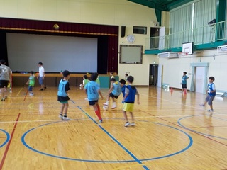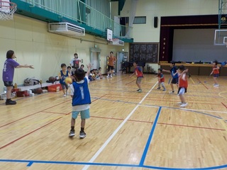 ミニバスケットボールでは、ドリブルやパス、シュートの練習をして、最後には試合をしました。ルールを確認しながら、楽しく体を動かしました。