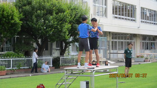 25日(土曜)開催の運動会に向けて、各学年の練習だけでなく、休み時間や放課後は、応援団やリレー選手の練習も頑張っています。本番は、学校全体を盛り上げてくれることを期待しています。(校長)